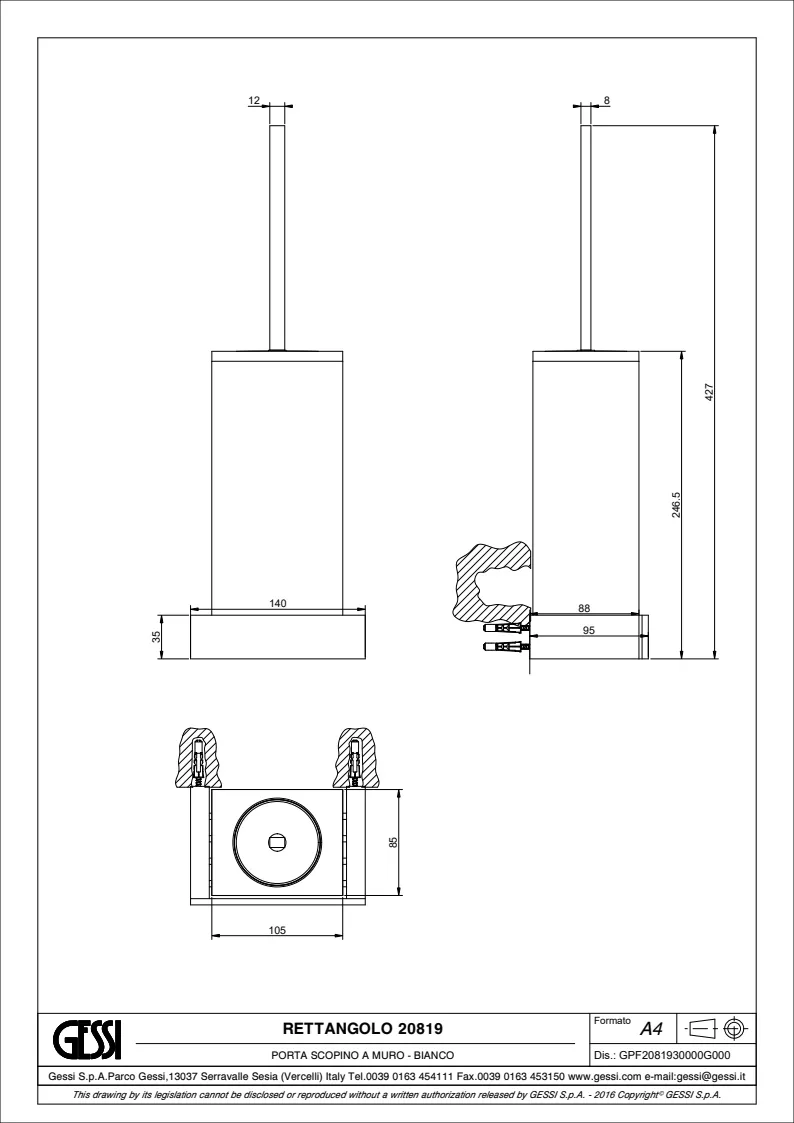 Ершик для унитаза Gessi Rettangolo 20819.149 Finox Brushed Nickel