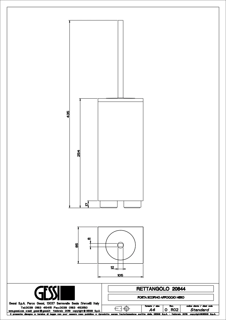 Ершик для унитаза Gessi Rettangolo 20844.706 Black Metal PVD
