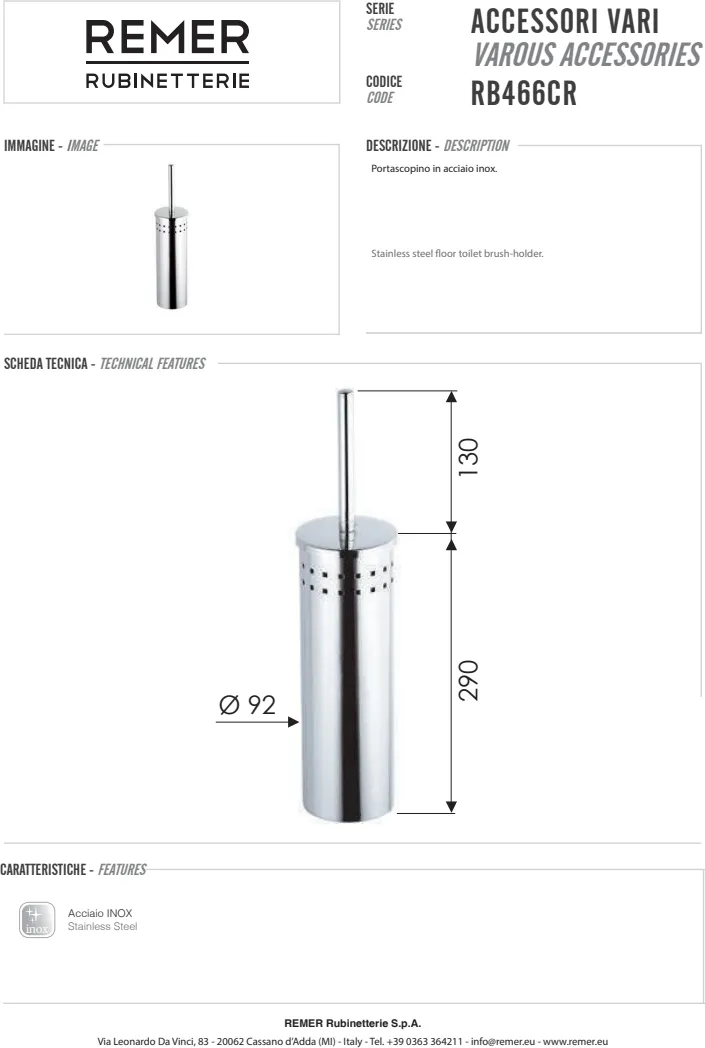 Итальянский бренд Remer Rubinetterie более 50 лет специализируется на выпуске смесителей, душевых систем и аксессуаров для ванной комнаты и кухни. Главная особенность продукции Remer — сочетание классического итальянского дизайна и современных технологий. В отличие от многих конкурентов, компания выпускает полный цикл изделий: от литейного производства латунных корпусов до хромирования и финальной сборки. Это обеспечивает стабильное качество, долговечность и оптимальную цену для европейской сантехники премиум-класса.