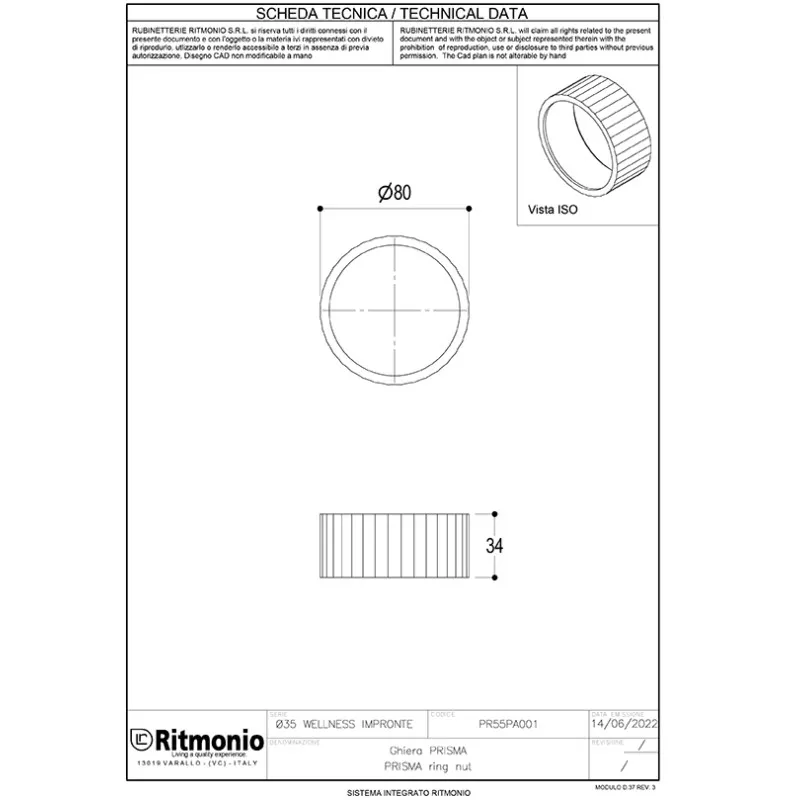 Ritmonio Impronte Кольцо-ободок для верхнего душа PRISMA, в цвете хром арт. PR55PA001CRL.