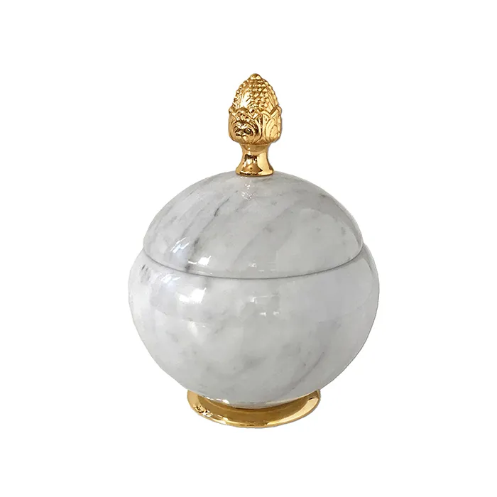 3SC Elegance Баночка универсальная, D=15/h18 см, с крышкой, настольная, цвет: мрамор bianco carrara/золото 24к. Lucido EL48ABCGD