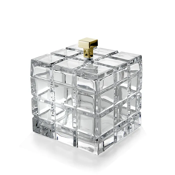 3SC Palace Баночка универсальная, 11x11xh13,5 см, с крышкой, настольная, цвет: прозрачный хрусталь/золото 24к. Lucido PA48ACRGD
