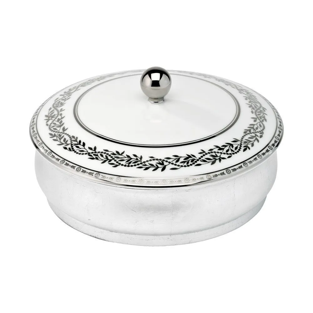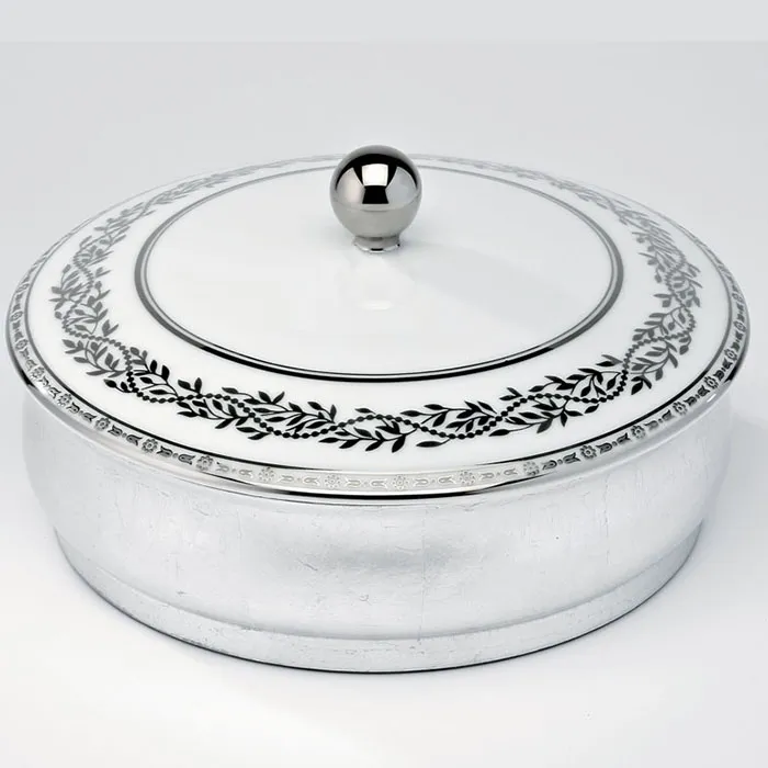 Китайская лакированная коробка с белой керамической крышкой THG Marquise Blanc Decor Platine A7G-A02-4623 серебро