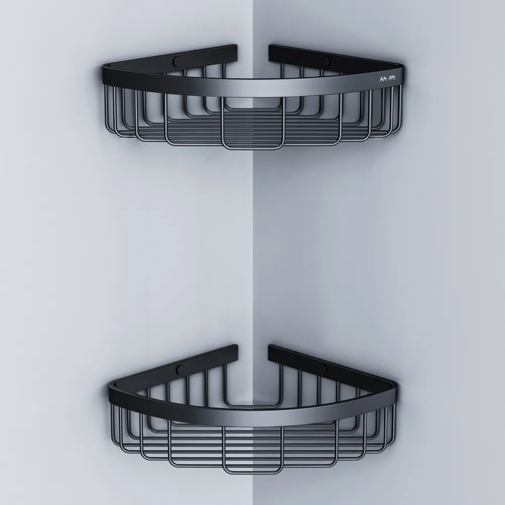 Разумное использование пространства: угловые корзины Sense L не занимают много места при этом позволяя разместить самые необходимые гигиенические и косметические принадлежности под рукой. Двойные корзины дают возможность размещать их на разных стенах а также на разной высоте относительно друг друга. Теперь поместятся баночки и бутылочки любой высоты.