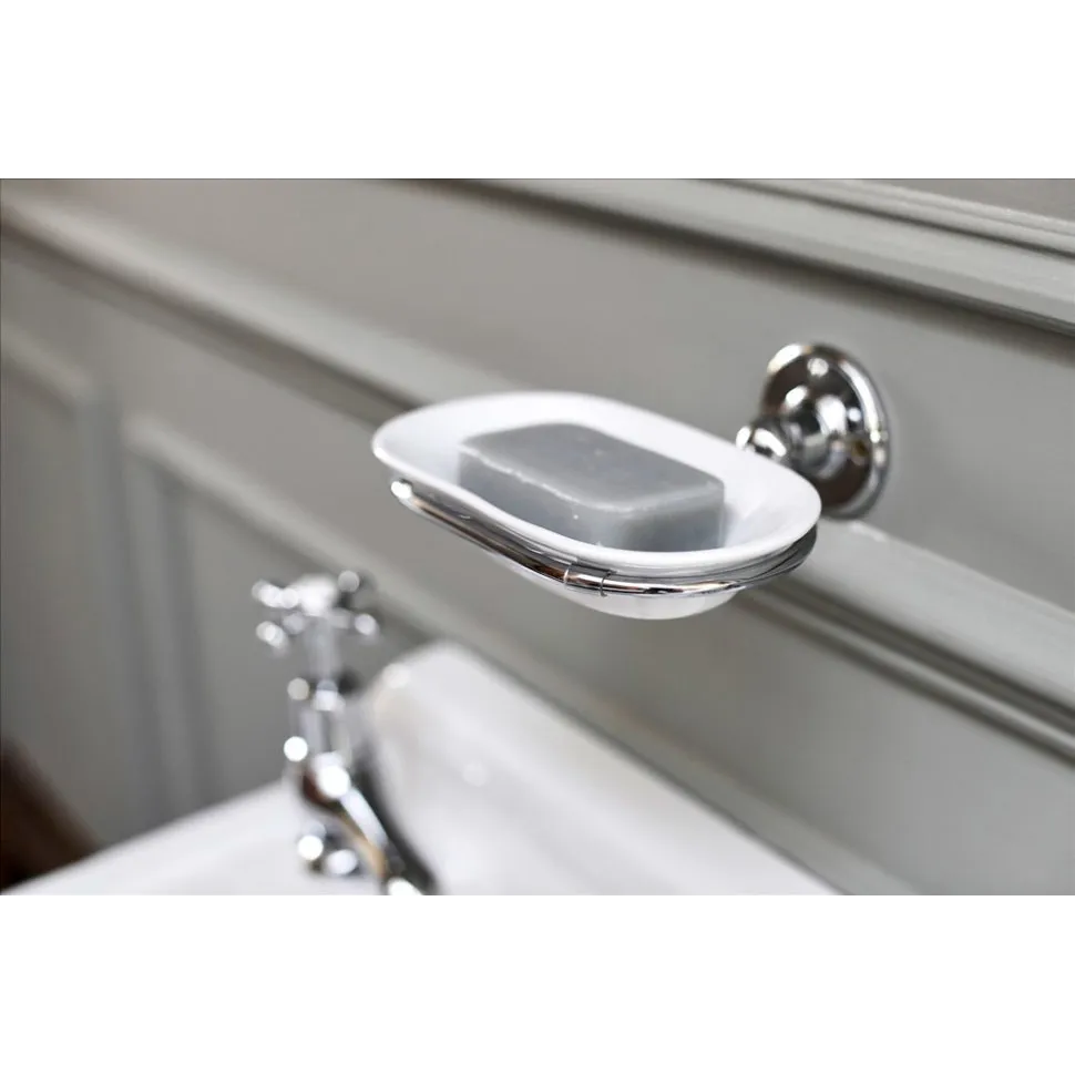 Компактная, прикрепленная к стене, мыльница по своей форме и дизайну напоминает маленькую ванну. Это позволит ей составить идеальную компанию основным предметам сантехники.