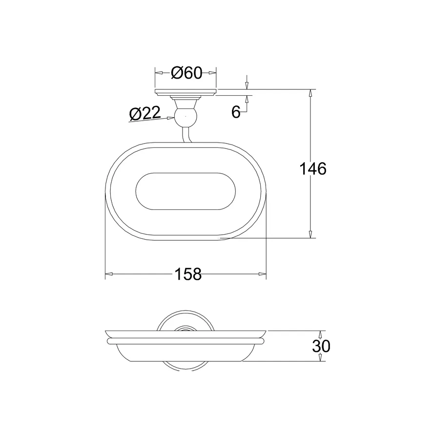 Подвесная мыльница с хромированной подставкой и керамической чёрной мыльницей.