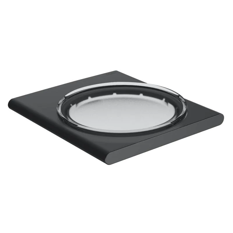 Мыльница Keuco EDITION 400 11555139000 для ванной, в комплекте с держателем, подвесная, хрусталь/латунь, хром черный шлифованный