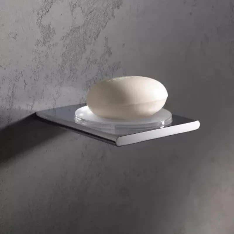 Мыльница выполнена в современном стиле и имеет глянцевую поверхность, что придает ей элегантный вид. Размеры полочки составляют 12 см в длину, 10 см в ширину и 2 см в высоту, что позволяет ей гармонично вписаться даже в небольшие пространства.