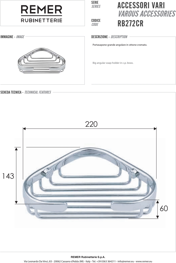 Итальянский бренд Remer Rubinetterie более 50 лет специализируется на выпуске смесителей, душевых систем и аксессуаров для ванной комнаты и кухни. Главная особенность продукции Remer — сочетание классического итальянского дизайна и современных технологий. В отличие от многих конкурентов, компания выпускает полный цикл изделий: от литейного производства латунных корпусов до хромирования и финальной сборки. Это обеспечивает стабильное качество, долговечность и оптимальную цену для европейской сантехники премиум-класса.