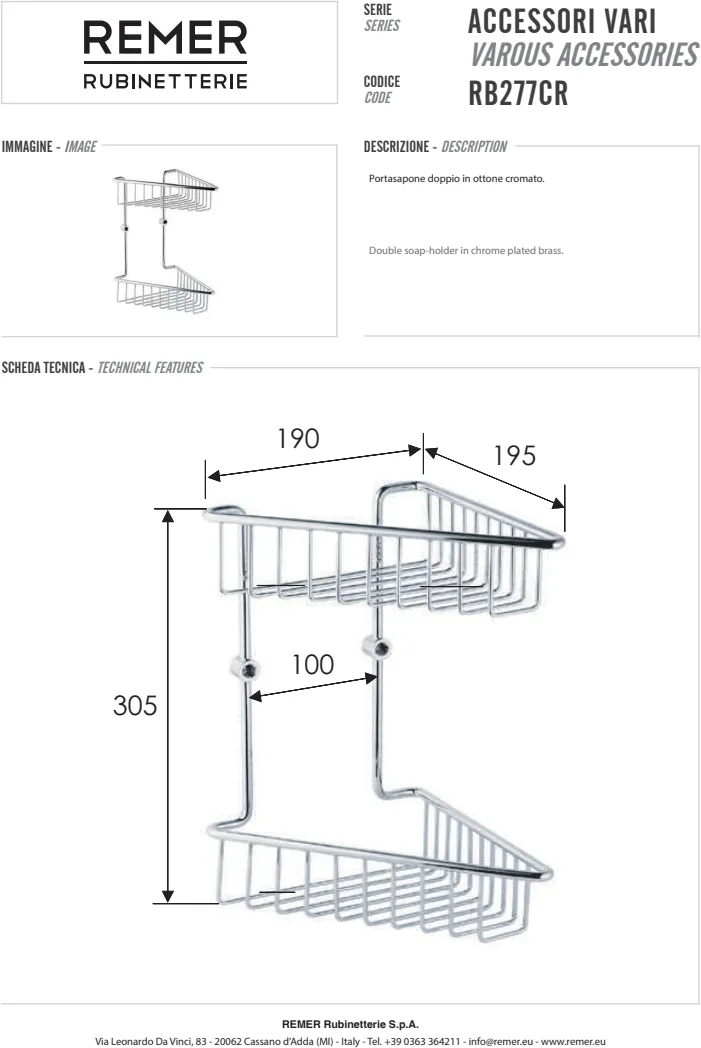 Мыльница Remer угловая хром (CR) RB277CR