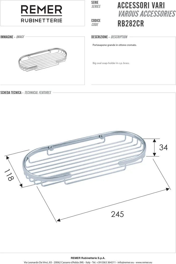 Мыльница Remer Acces RR RB282 овал RB282CR