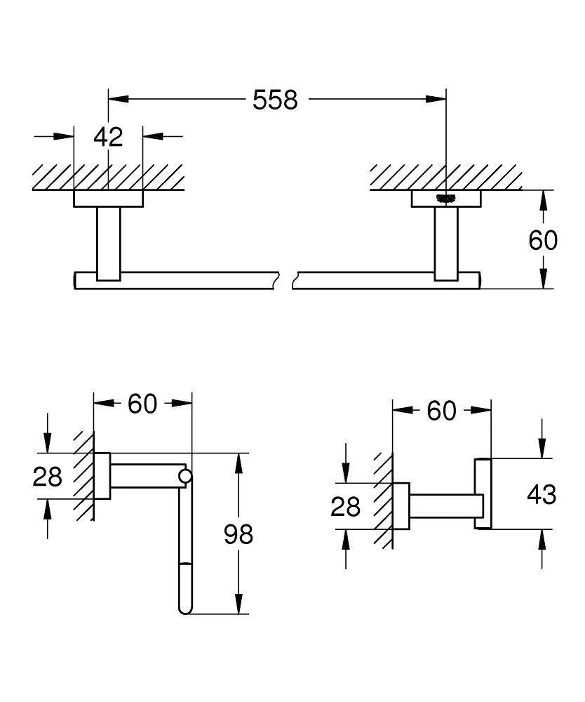 Держатель для банного полотенца GROHE Essentials Cube 600 мм, хром (40509001)