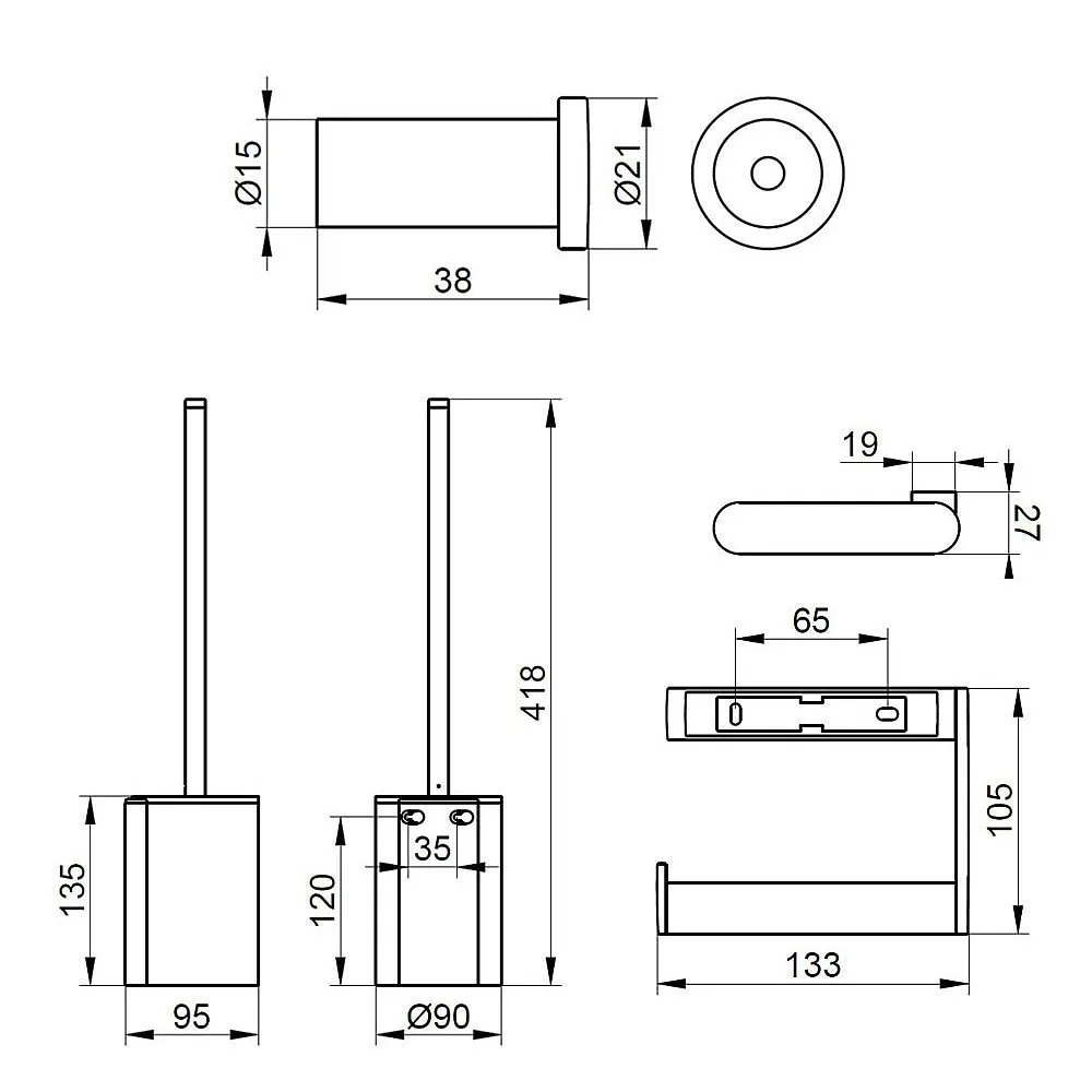 Выгодное предложение!!! Комплект для унитаза из 3-х позиций. В комплект входит ершик, держатель туалетной бумаги, крючок для полотенец. Все позиции имеют скрытые точки крепления, изделия изготовлены из латуни, которая не подвержена коррозии. Поверхность легко очищается от пыли и налёта.