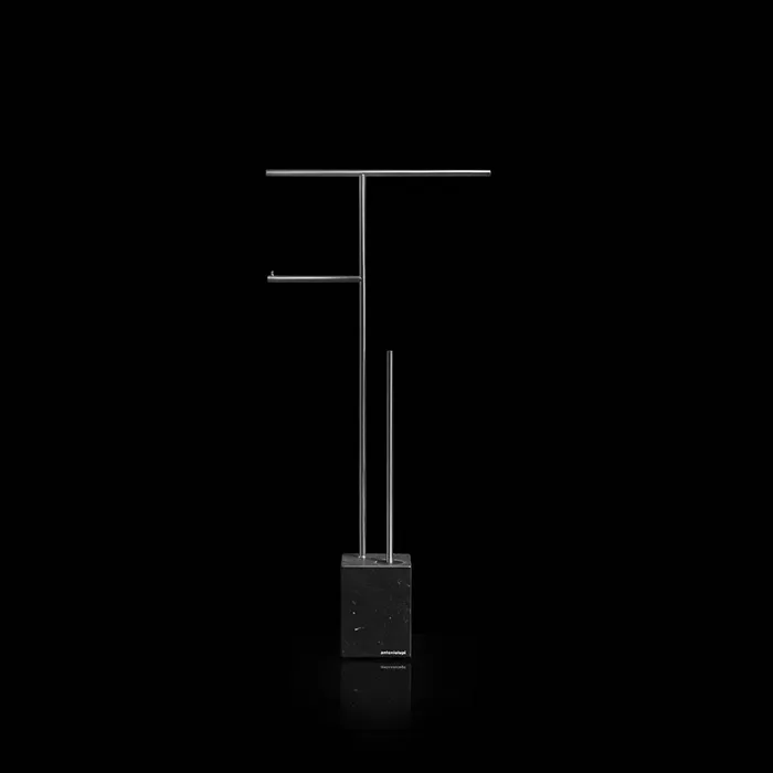 Стойка напольная Antonio Lupi Biviocombi 68.5см., с держателем туалетной бумаги, полотенце и ершиком, база из мрам Nero Marquinia satinato, Satin Steel А0002457127