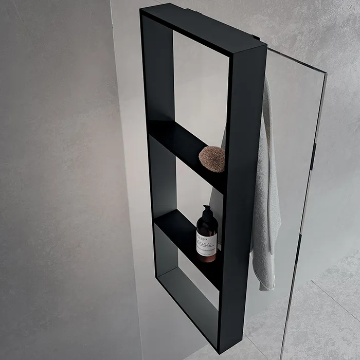 Аксессуары для кабины Novellini Frame 350х900, с 3 внутренними полками и внешним крючком, для крепления на стекло, черный матовый R90AKFPO3590-H