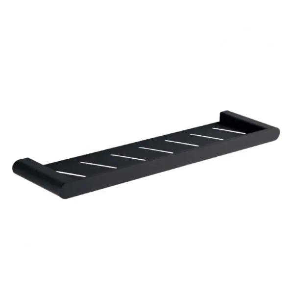 Полка для душевых принадлежностей черная с настенными креплениями в комплекте. Аксессуар изготовлен из алюминия, что обеспечивает легкий монтаж, а также долгий срок службы