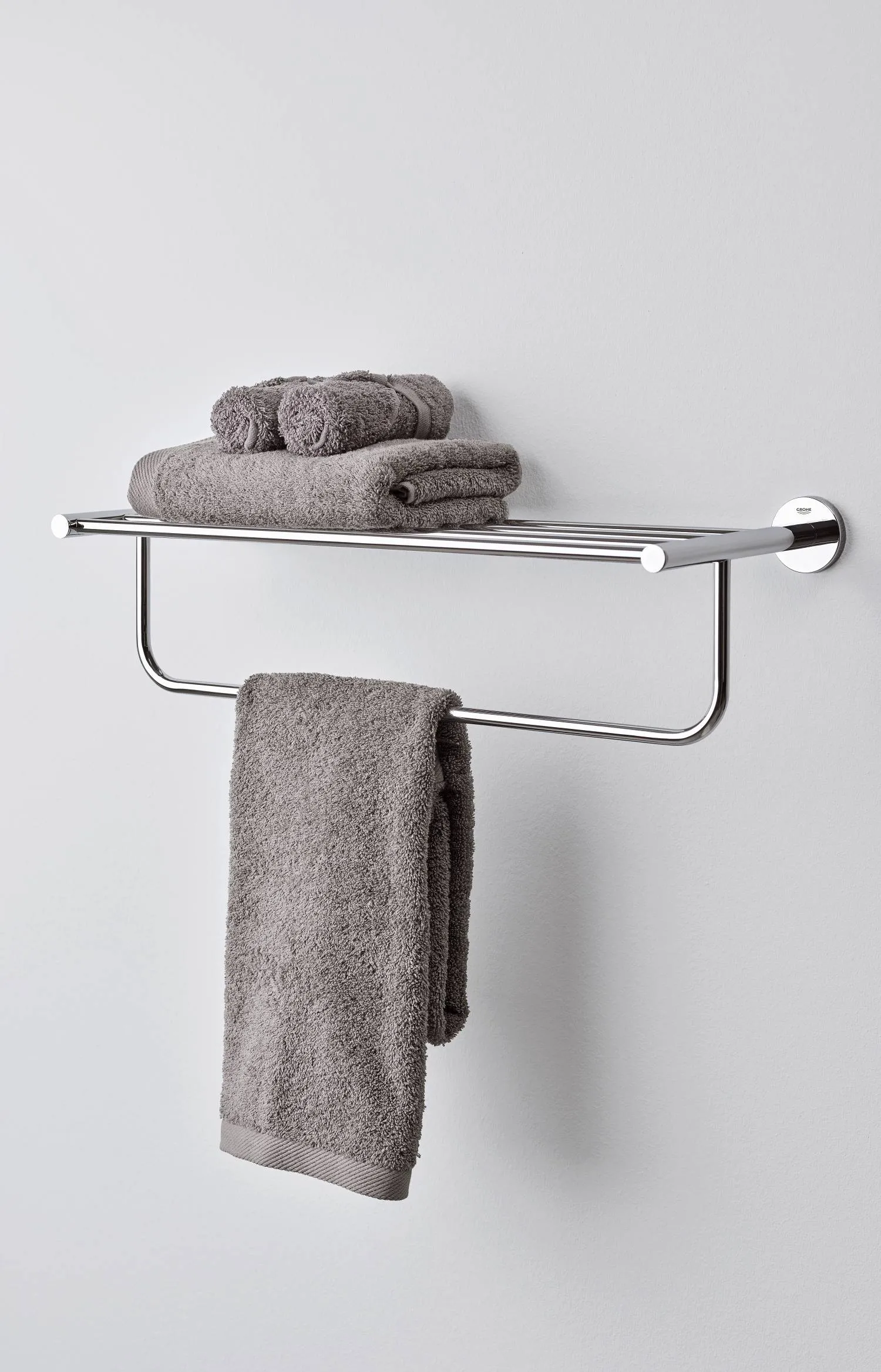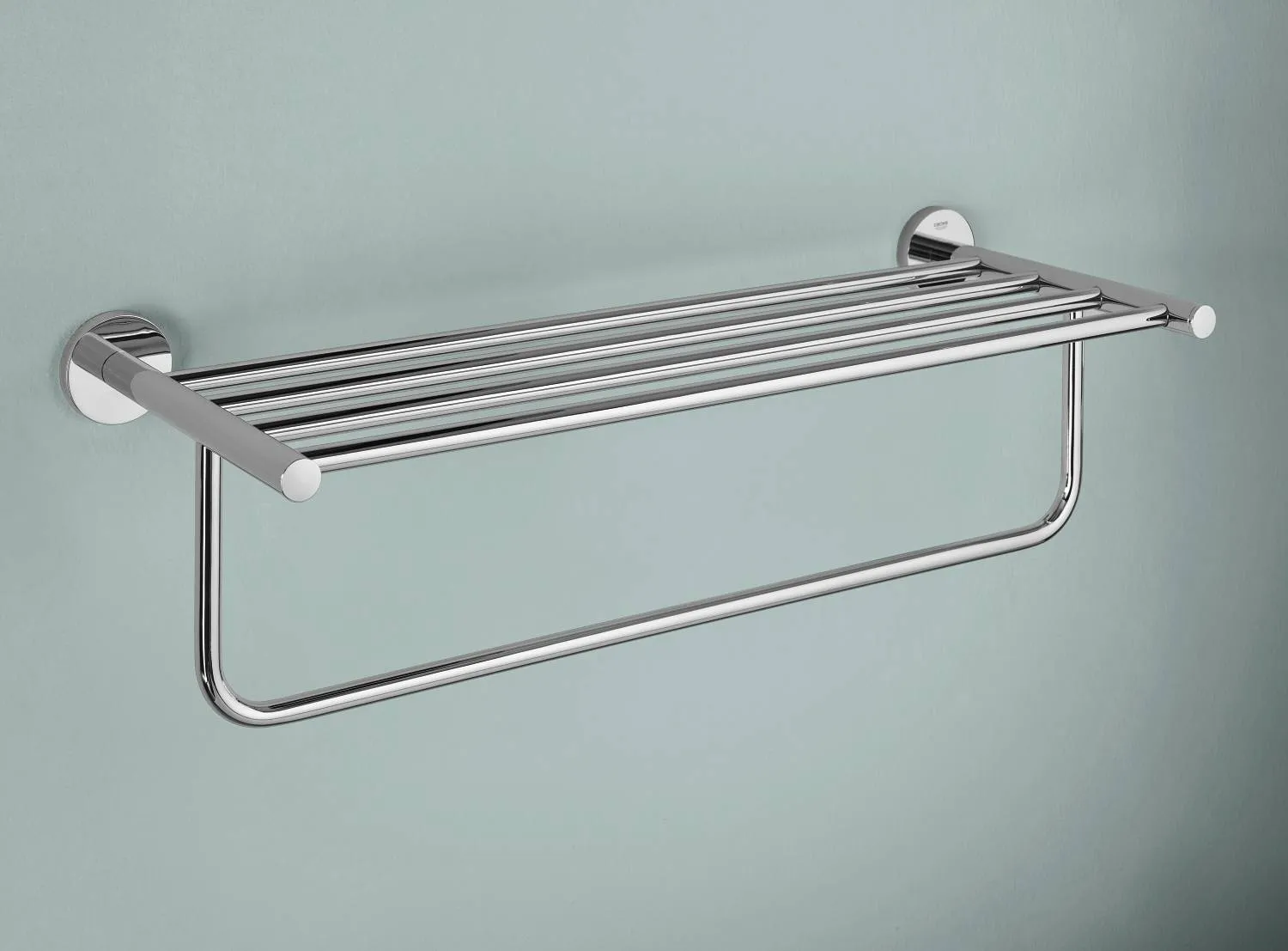 Ширина 510 мм, высота 163 мм, глубина 222 мм. В цвете хром.