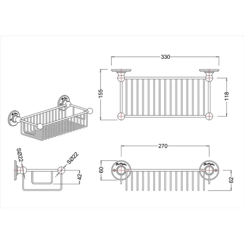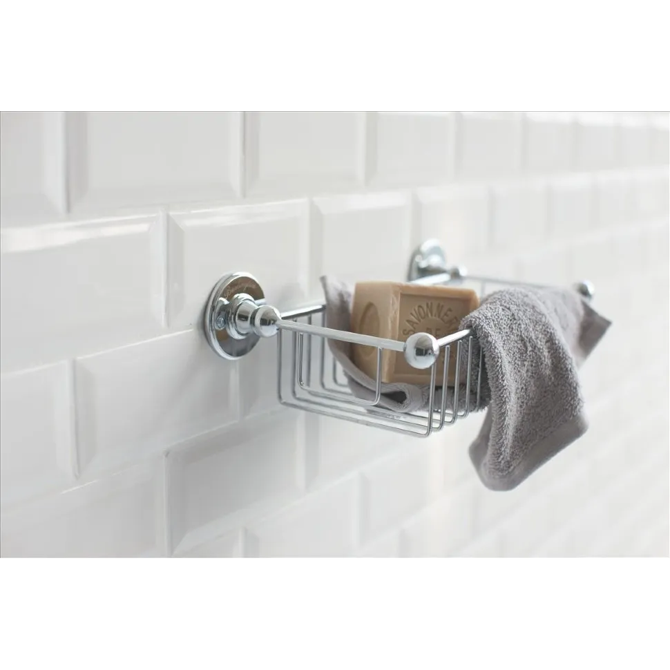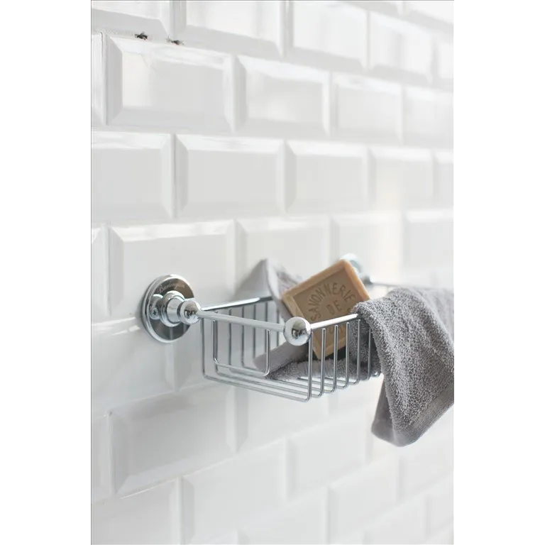 Эта глубокая решетчатая полочка для мыла, мочалки и других мелочей, необходимых во время принятия ванны или душа, составит идеальное сочетание с хромированными смесителями.