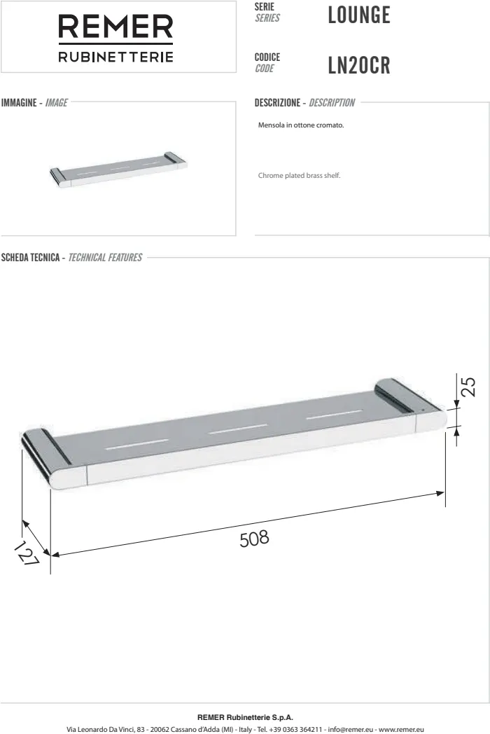 Полка Remer Lounge 51 см хром (CR) LN20CR