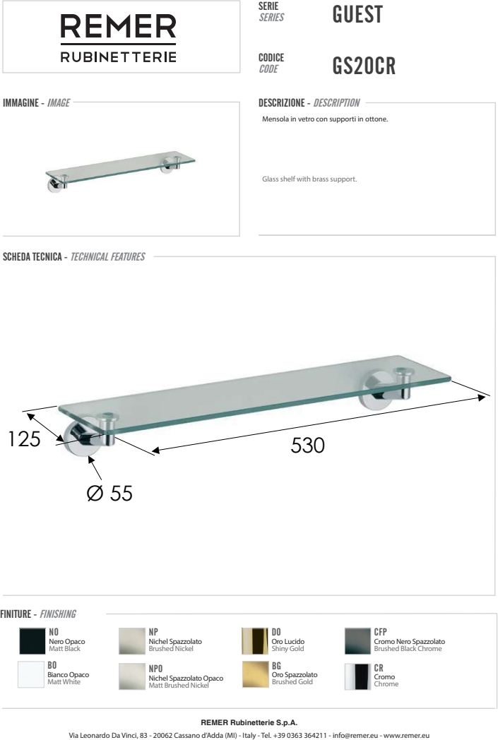 Полка Remer Guest 53 см хром (CR) GS20CR