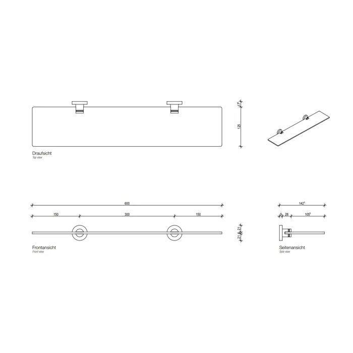 Полка стеклянная Decor Walther Basic GLA60 60x14 черный матовый 531660