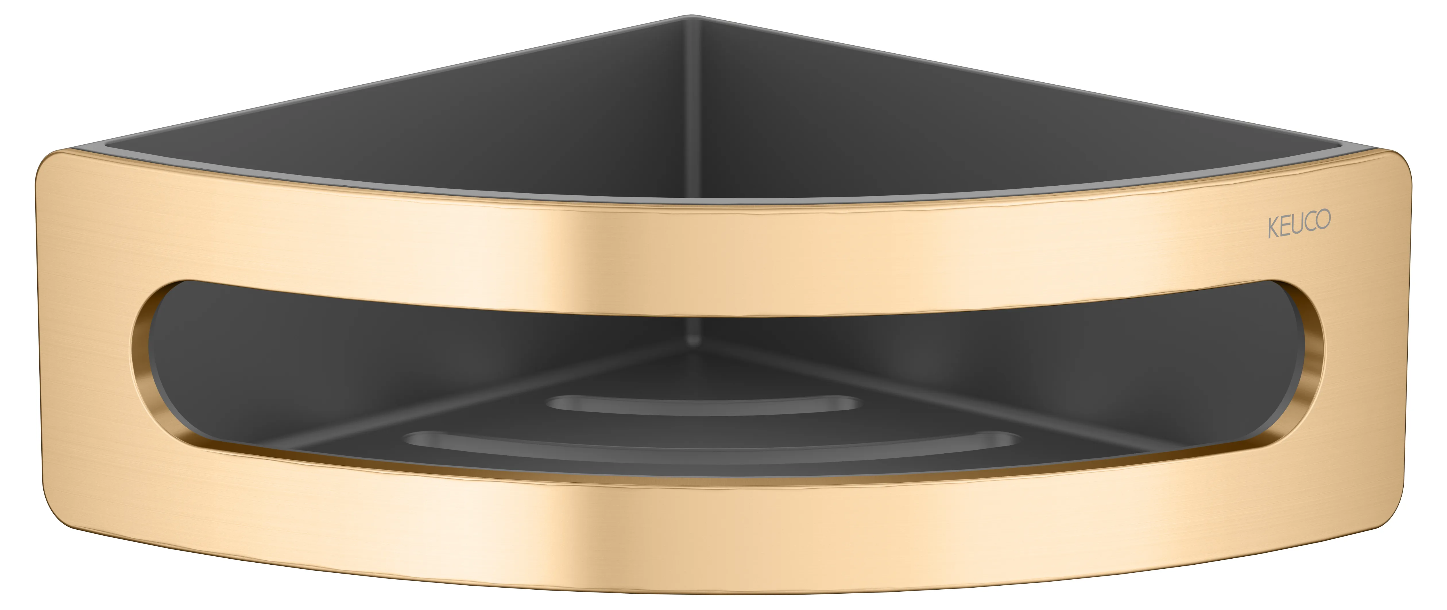 Полочка для ванной Keuco ELEGANCE 11657250001, корзинка для душа, угловая, со съемной пластиковой вставкой, латунь шлифованная