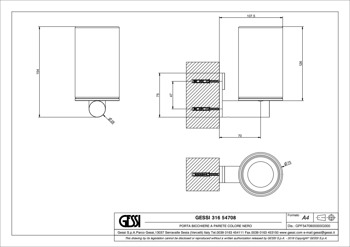Стакан подвесной для ванной комнаты Gessi 316 54708.707.