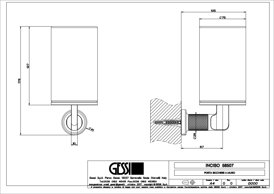 Стакан Gessi Inciso 58507.727 Brass Brushed PVD