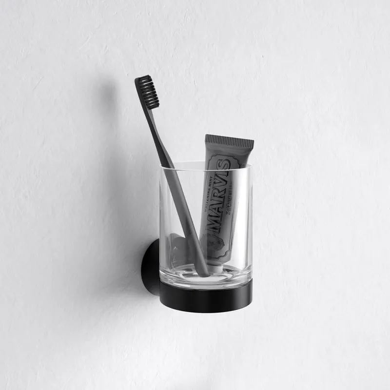 Держатель стакана Keuco REVA, 12850379000, в комплекте с хрустальным стаканом, черный матовый