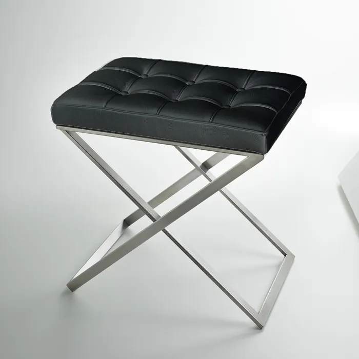 3SC Lino&Lone Стул с сиденьем из кожи со стежкой 50хh50х36 см, цвет черная кожа/никель сатинированный матовый
