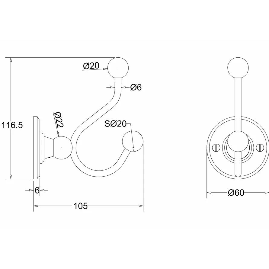 Двойной крючок с имитацией под золото небольшая, но незначительная деталь для помещения, стилизованного под французский шик или восточную экзотику. На крючок можно повесить полотенце или банный халат.
