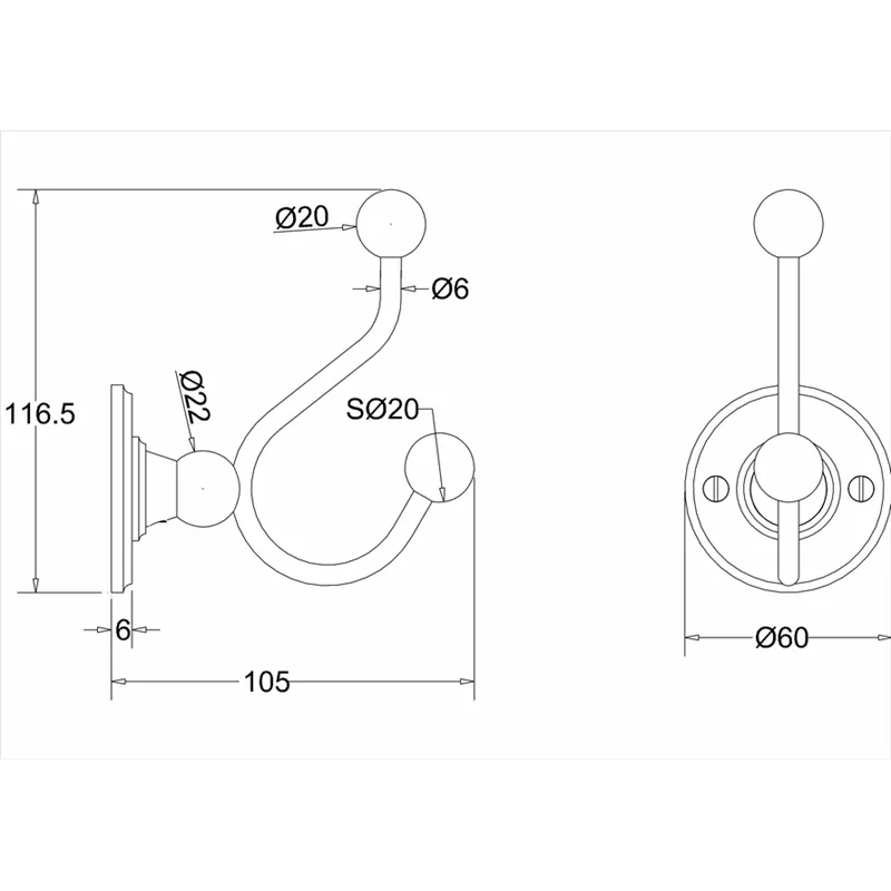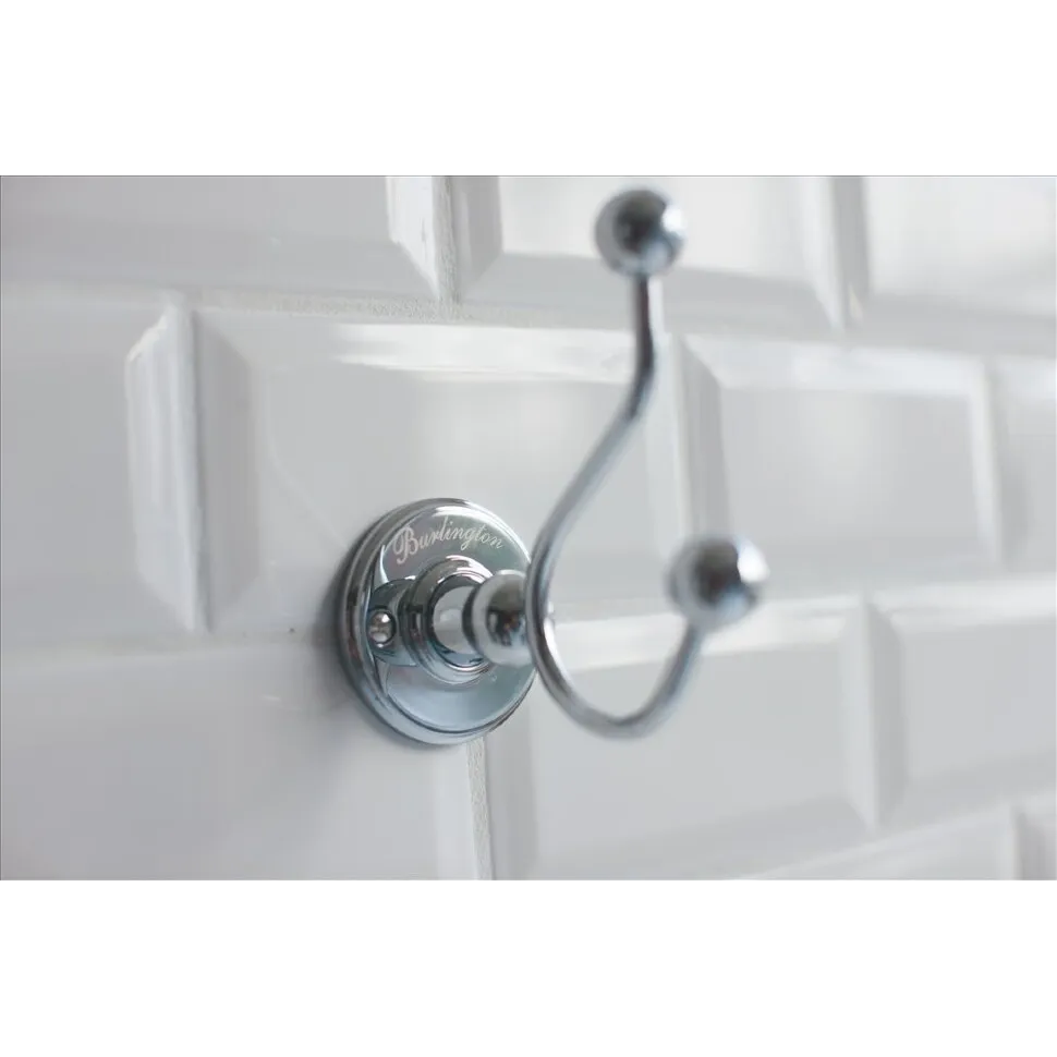 Изысканный двойной крючок для банного халата не только превосходно справится со своими основными функциями, но и идеально впишется во всеобщий дизайн помещения санузла.