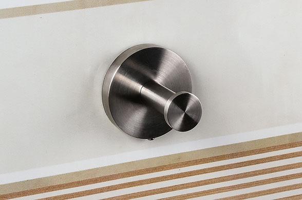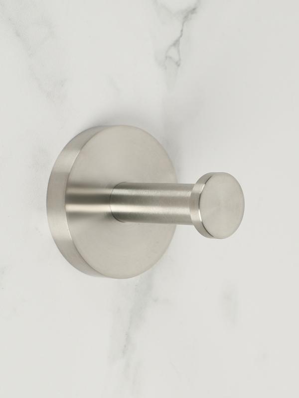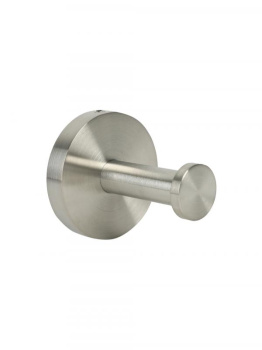Крючок для ванной одинарный из нержавеющей стали AISI 304 из коллекции аксессуаров для ванной комнаты Niza от испанского производителя сантехники NOFER прекрасно впишется в интерьер любой ванной комнаты, благодаря округлой форме и матовому оттенку нержавеющей стали. Крючок поставляется с монтажным набором, который позволяет сделать настенную установку крюка, причем скрытого типа. Этот вид установки не только позволяет смотреться оборудованию крайне выгодно и целостно, но и придает дополнительную устойчивость, ведь внутренняя часть крепления сделана также из стали и благодаря этому крючок может выдерживать нагрузки свыше 15 килограмм! Он также может быть использован, как крючок для одежды или для сумок.