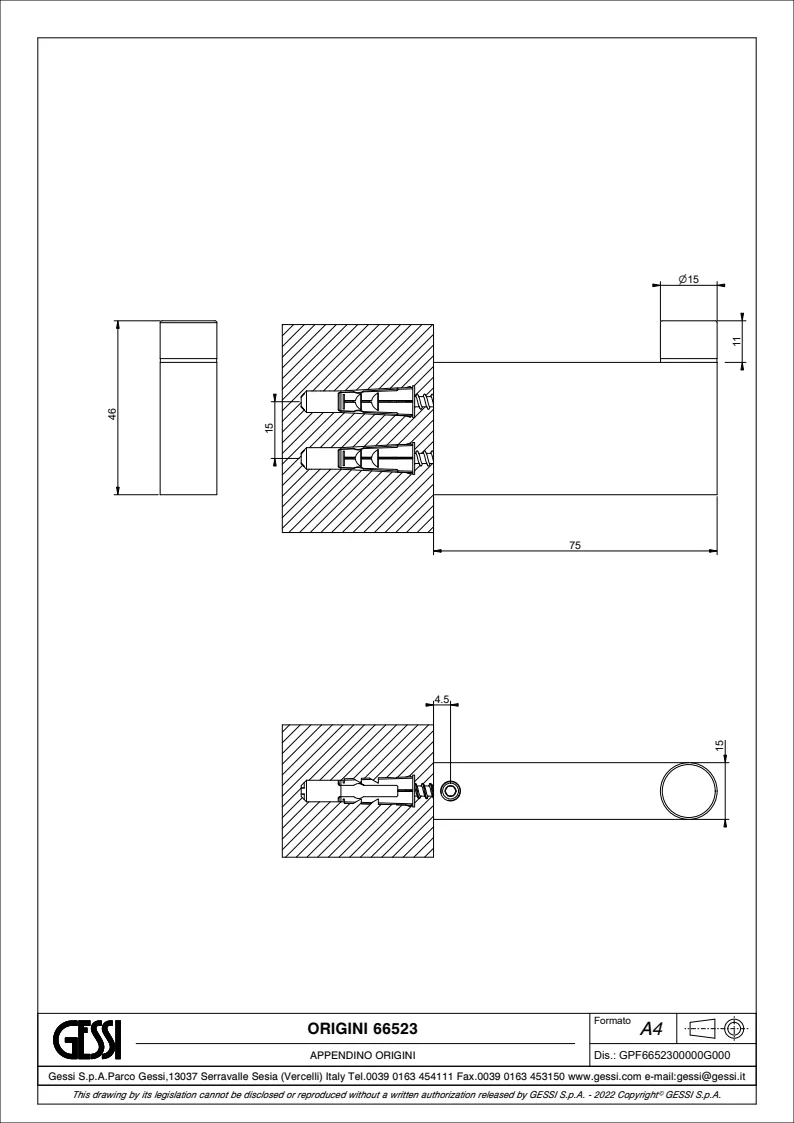 Крючок Gessi Origini 66523.707 Black Metal Brushed PVD