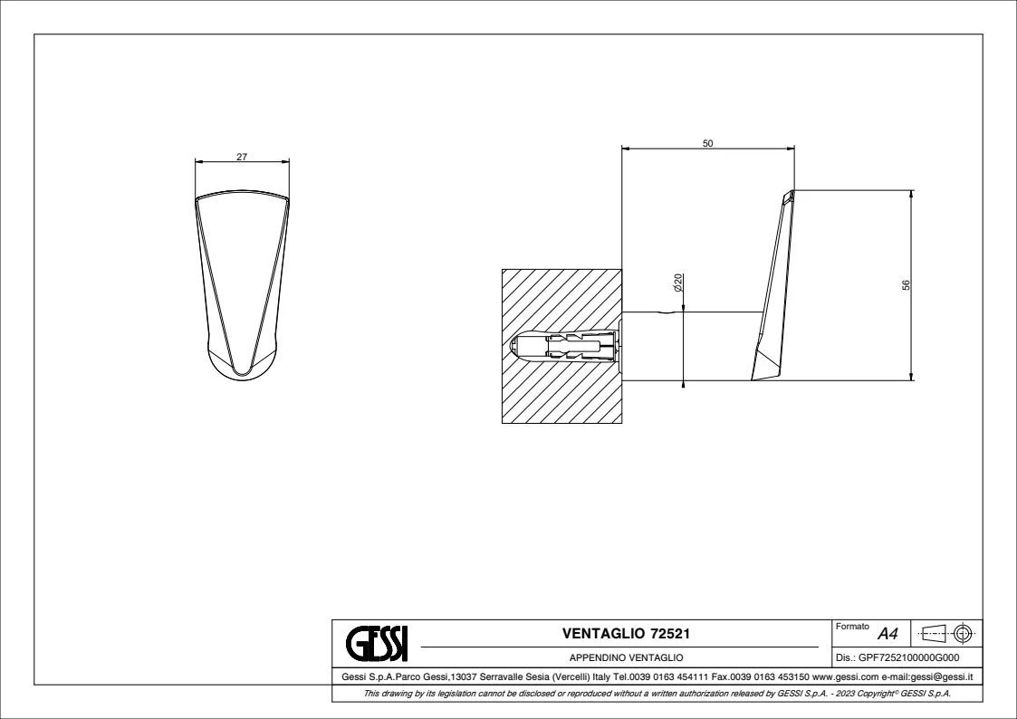 Крючок Gessi Ventaglio 72521.727 Brass Brushed PVD