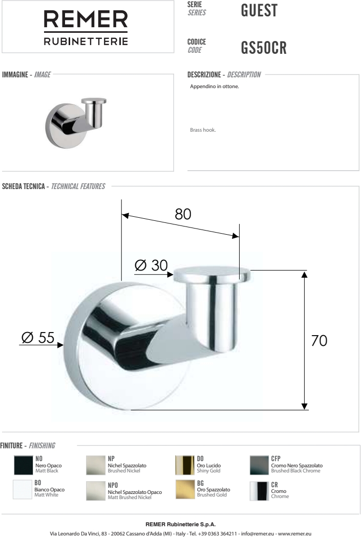 Крючок Remer Guest хром (CR) GS50CR