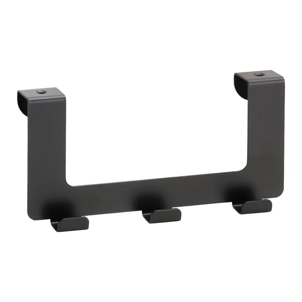 Вешалка на три крючка выполнена из черной латуни и предназначена для монтажа на дверь.