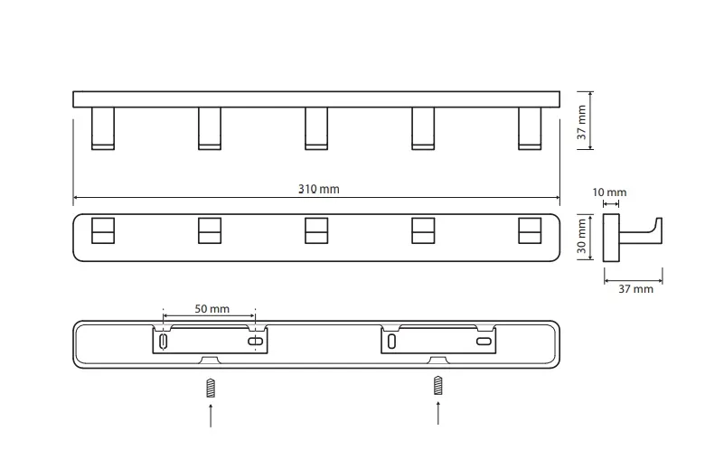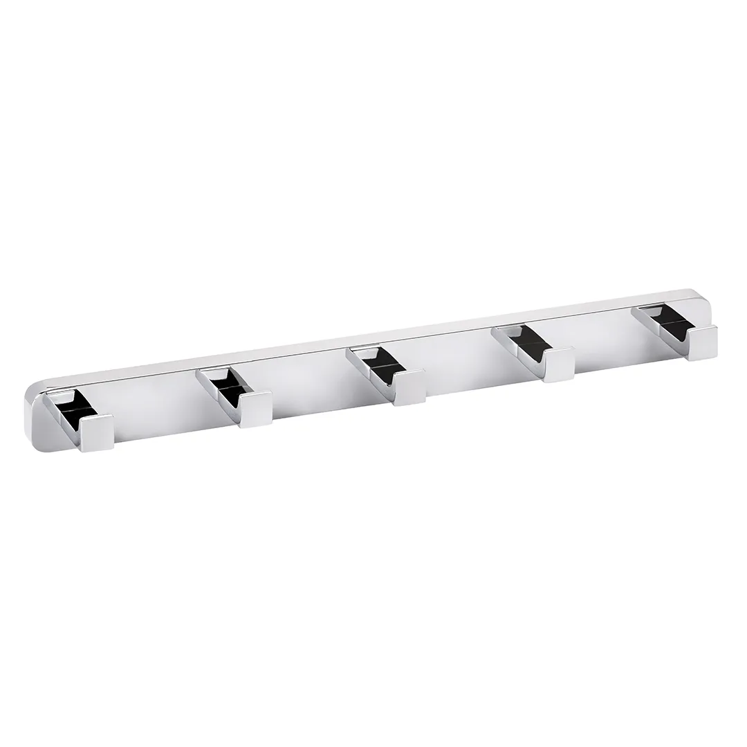 Вешалка на пять крючков выполнена из латуни цвета "хром" и предназначена для монтажа на дверь.