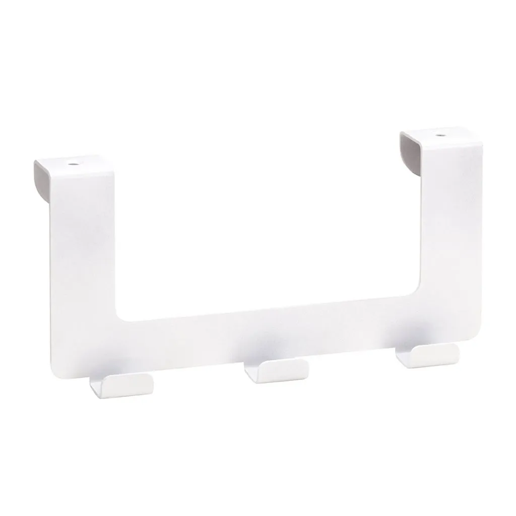 Вешалка на три крючка выполнена из латуни белого цвета и предназначена для монтажа на дверь.