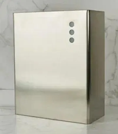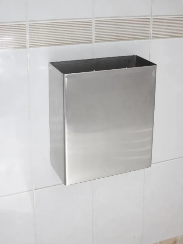 Настенный контейнер для мусора Nofer 14077.S выполнен из нержавеющей стали AISI 304 и может быть монтирован как на пол, как и на стену, имеются зажимы для полиэтиленовых пакетов. Корпус контейнера не имеет острых углов, а стенки корпуса имеют толщину 1,0 мм, благодаря этим качествам контейнер настенный считается антивандальным.
