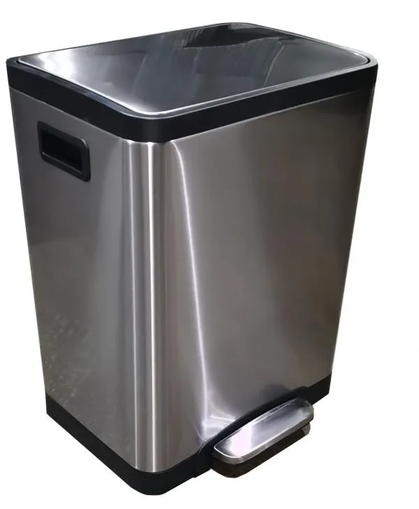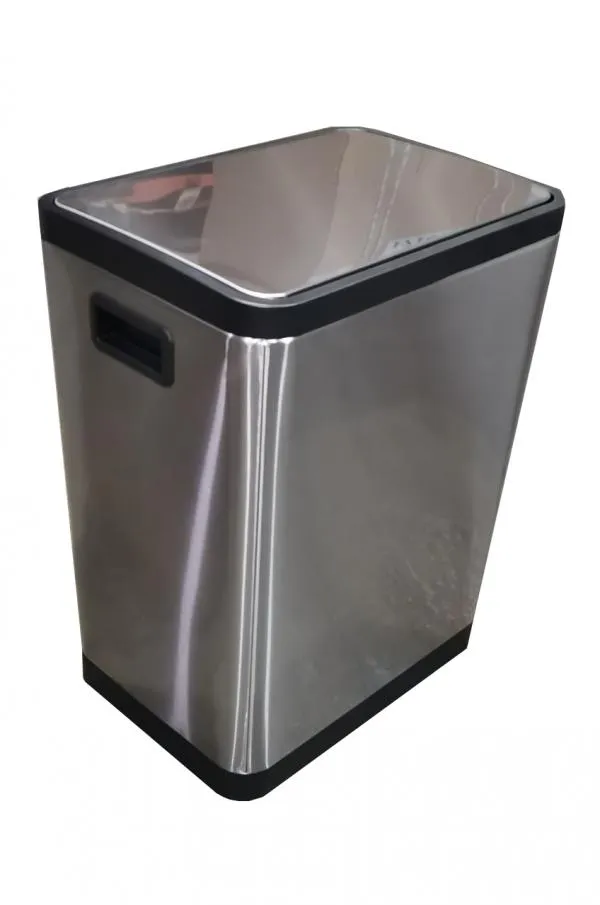 Контейнер для мусора NOFER, нержавеющая сталь. Крышка с амортизирующим доводчиком. С двумя пластиковыми разделительными контейнерами внутри. Специальная для разделения мусора. Общая емкость: 30 литров (15л x2). Размеры: 520 высота, 400 ширина, 325 глубина (мм). Корпус изготовлен из нержавеющей стали. Основание урны изготовлено из термопластичного материала. Ручки по бокам для удобства перемещения. Матовая отделка корпуса и глянцевая отделка крышки.