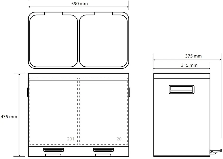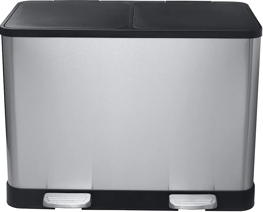 Контейнер для сортировки мусора на два отделения. Каждое отделение объемом 20 литров. Цвет контейнера: матовая нержавеющая сталь.