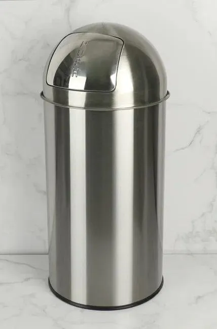 Контейнер для мусора из нержавеющей стали со специальной крышкой push-open, которая открывается с помощью нажатия. Мусорный контейнер имеет цилиндрическую форму. Ведро с крышкой сделано из особой марки AISI 430, которая славится большой стойкости к коррозии и отличной прочностью, что безусловно увеличивает срок службы контейнера. С помощью крышки можно легко зафиксировать мешок для сбора отходов, так же там есть внутреннее ведро с ручкой. Гарантия на контейнер из нержавейки с крышкой push-open составляет 2 года с момента покупки!