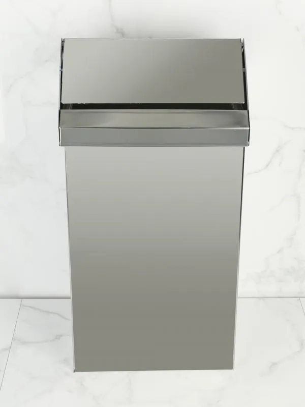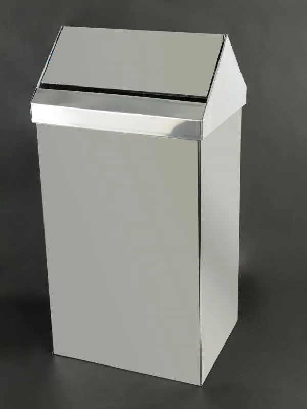 Контейнер для мусора Nofer 14075.40.В выполнено из нержавеющей стали AISI 430. Контейнер мусорный имеет прямоугольную форму и глянцевый цвет корпуса. Также в комплекте с ведром для мусора поставляется специальная крышка. Для создания этой модели используется специальный сорт нержавеющей стали, который славится своей стойкостью к коррозии, а также отличается высокой прочностью и устойчивостью к агрессивным средствам. Этот контейнер был предназначен для мест с большим потоком людей (ТРЦ, бизнес-центры, фитнес залы и прочие). Толщина стенок составляет 1,2 мм, что защищает от практически любых попыток навредить или сломать ведро. Гарантия на Nofer 14075.40.В от производителя предоставляется в течение первых двух лет использования