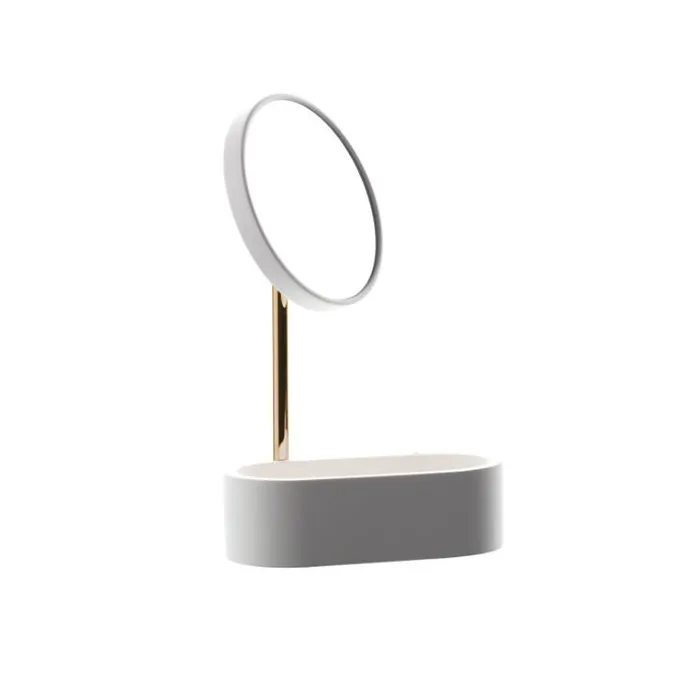 Косметическое зеркало с контейнером из композита Bertocci Easy, белый матовый/ золото 13009345000