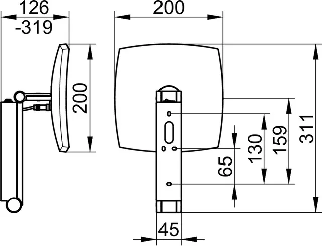 - С подсветкой, 1 цвет подсветки 6500 Кельвин (дневной свет), включение с помощью выключателя рычажного типа,настенная модель на кронштейне с шарниром, регулируется в трех плоскостях, одностороннее зеркало, вогнутое, коэфффициент увеличения x 5