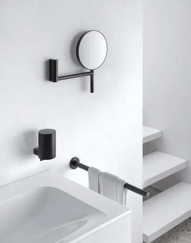Keuco использует разнообразные высококачественные материалы: нержавеющая сталь, хромированные сплавы, алюминий с анодированным или окрашенным покрытием, PVD-отделки, иногда стеклянные элементы, ESG-стекло. Эти материалы подбираются так, чтобы выдерживать влажность и перепады температуры, чтобы не ржаветь и не терять эстетики с течением времени.