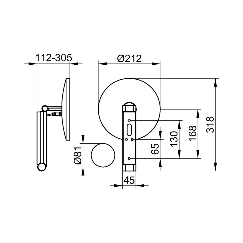 - конструкция: настенная модель, поворотная (регулируется в трех плоскостях), на кронштейне с шарниром, с подсветкой (5-уровневое переключение цвета) от 2700 Кельвин до 6500Кельвин), коэффициент увеличения х 5, вогнутое, одностороннее