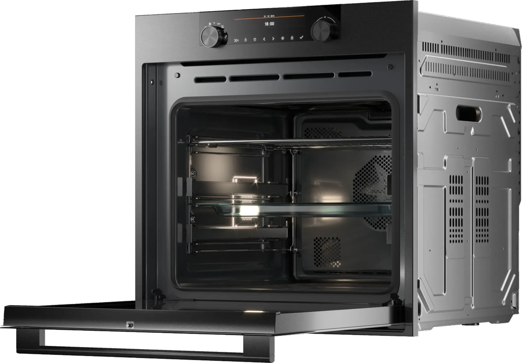 - Пиролитическая очистка — камера нагревается до высоких температур, превращая загрязнения в золу, что делает уход простым и безопасным.