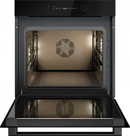 Духовой шкаф Asko OT56BGH — это современный электрический духовой шкаф из премиальной серии CRAFT, произведённый в Словении. Модель выполнена в стильном черном стекле, что придаёт кухне элегантный и технологичный вид. Вместительный объём камеры — 71 литр — позволяет готовить сразу несколько блюд, что особенно удобно для семьи или праздничных застолий. Управление реализовано через удобный поворотный регулятор и яркий цветной TFT-дисплей, обеспечивая лёгкость настройки и контроль всех функций.